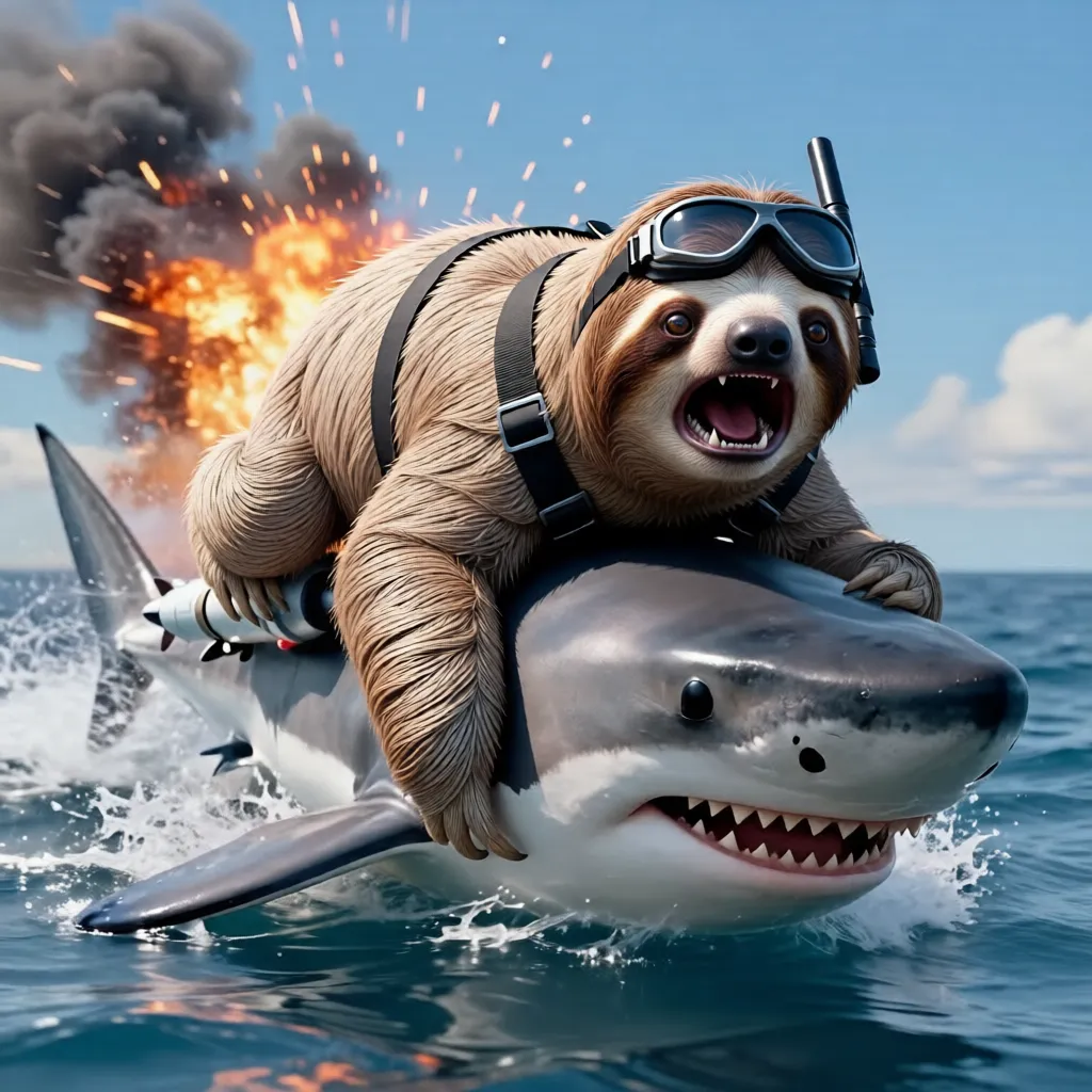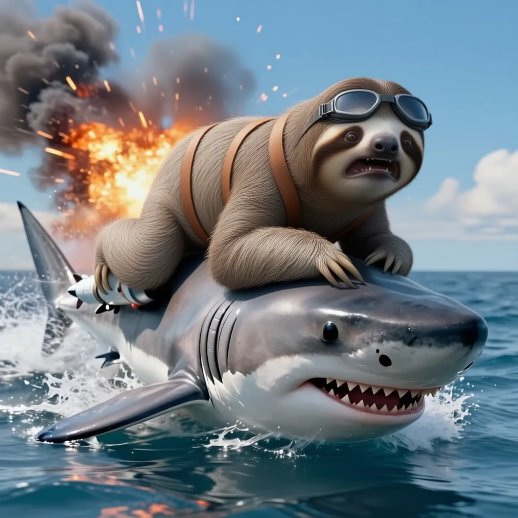 Replace a squirrel with an action-hero sloth lying low and clinging on tightly,