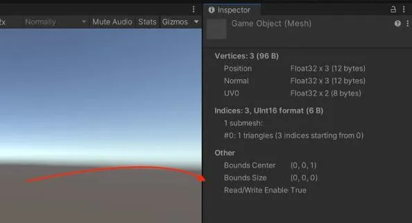 This misinterpretation leads to incorrect vertex positions, resulting in the mesh’s bounds being centered at (0,0,1) with zero size, and vertices not displaying as expected.